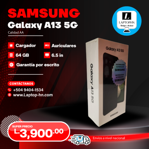 «¡Potencia tu vida con el poderoso Samsung Galaxy A13 5G! Experimenta la velocidad del futuro y lleva tu experiencia móvil al siguiente nivel. ¡Consíguelo ahora en LAPTOPHN y haz que cada momento sea inolvidable!»